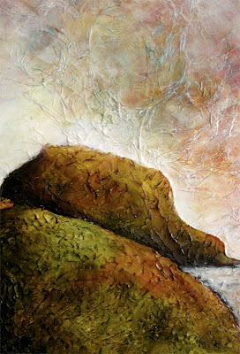 Autumn Cliffs is a practice painting for a larger painting I will be doing. I have been challenging myself to work with sky, water and land. I find it fascinating to see how light inter plays on all three thus creating a myriad of shadows and highlights. If your looking for high drama in life look to the sky and see how light falls upon the earth below.