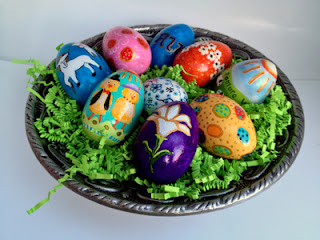 During these dark and dreary days of February I have been keeping myself busy designing and painting the 2013 Easter Eggs. I love celebrating Easter and always look forward to the new life presented at spring both in nature and in my own life. For sure these brightly colored eggs have brightened my apartment and have brought me a great deal of joy.