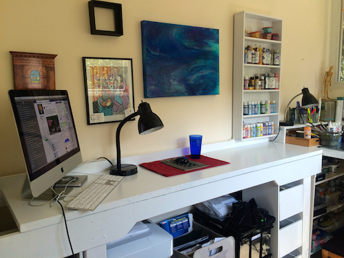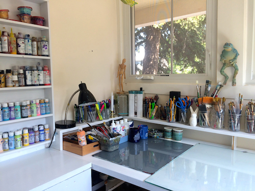 Summer is in full swing and during June, July and now into August life has been filled with activities, people, surprises, work, earthquakes, smoke, volunteer activity and of course laughter and beauty. But it is one of the surprises that I want to share with you. My art studio has been in utter disarray since my art show in June and it was not until this past weekend that I finally had a chance to begin cleaning out and reorganizing all the mess. The question was where would I start and what should I tackle first? My strategy was to start with the least desirable, the endless paper stacks. Then I moved on to moving furniture, washing walls, sorting through hundreds of paint brushes, throwing out dried paint bottles and finally repainting the furniture. Below are some before and after photos for you to see the change. I was surprised that such a loathsome task could hold such a jewel of a surprise. Having an ordered and clean space lifted my spirits and actually brought new passion, vision and joy for creating art. In retrospect I was reminded that some of the best things about life are hidden in the rough areas of our daily messes.