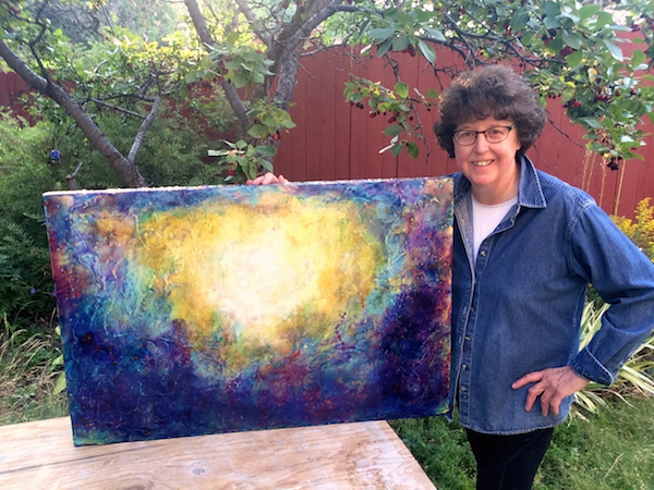Below are photos of a new abstract that came from all the cleaning and I can’t tell you how energized I was in creating this painting. Another surprise.