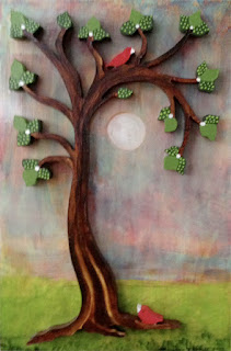 Below is my first art piece of 2013. This is a three dimensional wood cut relief. The tree and the birds have been coutout and mounted on a 8″ x 12″ wood box panel. This painting is available for purchase at my website, Urban Pastures Art, under the tab Available Works, Wood Cut Relief