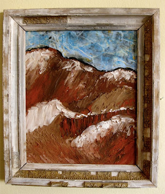 I have framed the painting in a antique frame that I found here in Helena this fall. In fact I have been collecting old frames and all 10 of my new abstracts will be placed in one. The more beat up and rugged the frame the better so they fit the character of these rugged and beautiful Rockie Mountains.