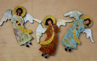 The Lark Art Gallery, in Sedona, Az, specifically asked me to create new angel ornaments for them that would reflect our diverse multicultural population. They also wanted angels playing instruments. So I tried a variety of new hair styles and skin tones on these angels. Can you see your ethnic background in any of these angelic faces? I also included several different musical instruments. I’m calling this unique group, “A Heavenly Band of Angels”. I’m glad that this order prompted me to stretch and to think in a broader sense about our heavenly ethnic friends.