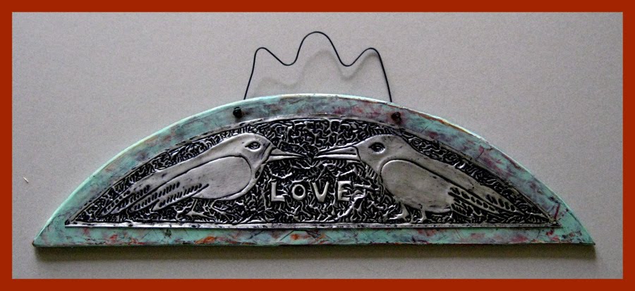 Welcome to Urban Pastures first Annual Christmas in July Sale. I am proud to present a group of large aluminum repousse pieces mounted on an original acrylic painting. Repousse is a method of creating a relief design by hammering or pressing the reverse side of a metal surface. Literal meaning in French, “to push back”.